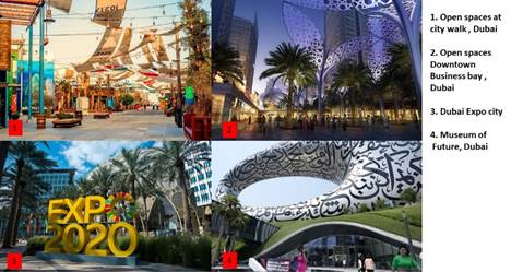 1. INTRODUCTION The United Arab Emirates (UAE) has undergone a remarkable transformation over the past three decades, transitioning from a desert landscape into a dynamic global center for commerce, expatriate communities, and architectural marvels. This rapid development has been propelled by ambitious urban planning initiatives, with cities embracing smart city models and emerging as drivers of socio-economic and cultural change (AlAwadhi & El-Gohary, 2018). Against this backdrop, the relationship between architectural interventions, urban design, and the social fabric of communities has gained increasing significance. The UAE's evolution serves as a compelling case study of how strategic urban planning and innovative architectural interventions can reshape not only the physical landscape but also the socio-economic dynamics of a nation (Dara, 2019). Ambitious projects such as the Burj Khalifa, the world's tallest skyscraper, and the Palm Jumeirah, a sprawling man-made island, symbolize the country's vision of modernity and progress. These landmarks have not only redefined the skyline but have also catalysed economic growth and international recognition. However, beyond the striking skyline and luxurious developments lies a deeper narrative of social cohesion and sustainability. The built environment serves as a reflection of the socio-economic and cultural climate, shaping the way individuals interact with their surroundings and with each other. Architectural plans and urban designs are not merely aesthetic expressions but pivotal elements in fostering social bonds, enhancing quality of life, and promoting sustainability. This research seeks to delve into the nexus between contemporary architectural paradigms, urban designs, and their profound impact on social dynamics and sustainability within the UAE context. Through an extensive review of literature and case studies focusing on selected mixed-use developments, this study aims to unravel the intricate connections between physical layout, built form, and societal well-being (Al-Najjar et al., 2017). By examining how architectural interventions and urban planning strategies influence key aspects of social cohesion and sustainability – such as social interactions, sense of belonging, wellbeing, and quality of life – this research endeavors to illuminate the potential of well-designed urban spaces to foster inclusive communities and enhance overall societal well-being, not only within the UAE but also beyond its borders. 2. Development of Urban spaces in Dubai Case studies of urban development projects offer valuable insights into the real-world implications of design interventions on social cohesion and sustainability. By analyzing diverse contexts and approaches, researchers have identified both successes and challenges in creating inclusive and resilient built environments (Smith et al., 2017). These case studies range from large-scale master-planned communities to adaptive reuse projects in urban cores, providing lessons learned and best practices for future development initiatives. Additionally, cross-cultural perspectives on urban design highlight the significance of considering cultural norms, values, and historical contexts in shaping architectural preferences, community dynamics, and environmental attitudes (Jones & Kim, 2016). By embracing diversity and cultural sensitivity, designers and planners can create more contextually appropriate and inclusive urban spaces. (Figure 1 & 2) shows the transformation of Dubai. Figure 1