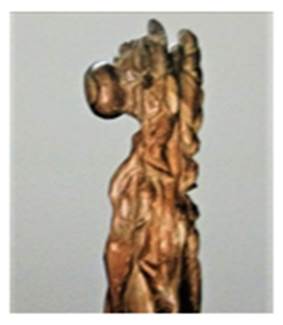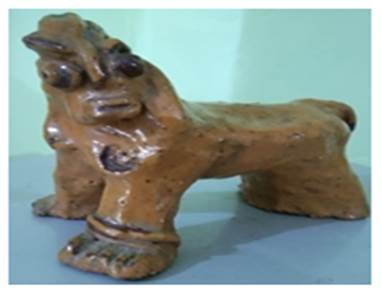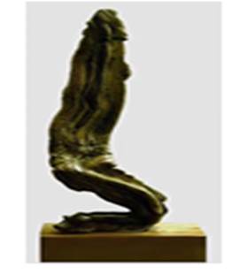 During early seventies of last century two women artists Saleha Ahmed born (1947) and Hela Das studied at Kala Bhavana, Santiniketan and Faculty of Fine Arts, M. S University of Baroda and both artists has achieved degree with specialization in sculpture. As eminent art historian mentions their bold, significant presence in the art scene with more physical energy with hammer and chisel instead of previous female artists of using paint and brush. Kandali (2011) Lives and works in Jorhat Saleha Ahmed have been exploring various medium as clay, terracotta, bronze and mix media. In her works abstract figuration and folk appearance has been conveyed through her figurative compositions Figure 3 Figure 4 as inspired from primitive art and British modern sculptor monumental, intellectual character. Eminent poet, art critic Nilmani Phookan has given title of his writing on sculpture of Saleha Ahmed as the visible sensation and truth of touch and he writes Saleha Ahmed a prolific modeller although she works in other sculptural medium as carving, welding time to time. Phookan (2013) Hela Das, based in Guwahati died two years back, worked mainly in wood carving medium. In her sculptural compositions Figure 5 and Figure 6 of emotive human face, female figures have been done with aesthetical vigour, warmness, and vitality as similar to existence of man and nature. Figure 7