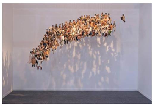 New generation of women artists as Sudipta Das and Rashmimala originally belongs to Assam though residing outside Assam; deal with native important issues as displacement of people and botanical art. Sudipta Das work titled A Soaring to nowhere, 2018 Figure 14 worries on the non-existence and displacement of refugees through the figures which are suspended in the void. Figure 14