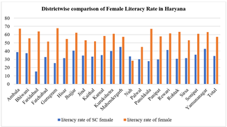 Table 1District Wise Literacy Rate of Women Population in Haryana