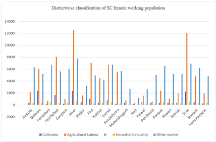 working population of Women it is more in Bhiwani, Hisar, Jind, Mahendergarh,