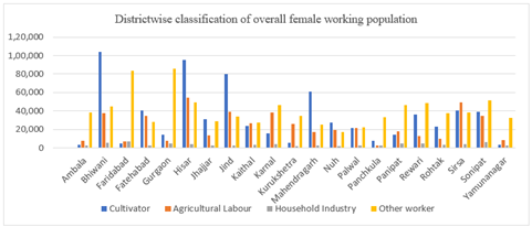 Women are working whereas in Yamunanagar, Ambala, Nuh, Faridabad, Palwal less