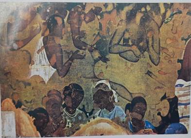 2) Early Middle Ages (Bagh Caves): Indian culture in history is represented by the cave paintings here. After Ajanta, the important caves from the point of view of painting are the caves of Bagh. This cave is two to three miles away from the river Baghini, a tributary of the Narmada, near the Vindhyachal mountain range in the Gwalior state of
