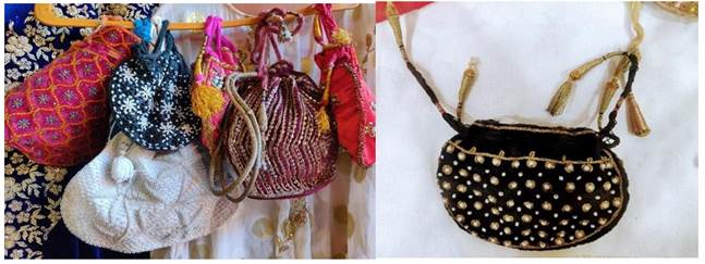 One must not confuse between batua and Bhopali purse. Batua is essentially a small semi spherical shaped purse with beads & stars stitched on its front side only. Whereas Bhopali purses are modern designed differently shaped large and small sized with bead/Pot work all over. These purses are gifted by localities to their friends and relatives visiting the city, as a symbol of the city of lakes. Prasad (2010) Bhopal is still famous for its batuas though cheaper machine embroidered fabrics have become a threat to its existence. In the absence of Royal patronage (which is long gone), the artists were left on their own to fend for business and clients. There is a decline in the workmanship and quality of products. Ranjan (2009) This can be attributed to various factors such as decline in royal patronage, change in the customers’ taste and preference, need of skill up gradation of artisans, artisans’ lack of market connect. Bhopal: Experts a Dying Breed, Low Wages Keep New Artisans Away. (2019). Figure 11