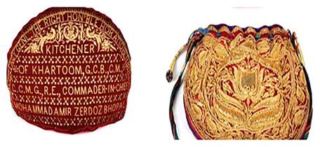 Traditionally, zardozi was done on curtains, canopies, cushions, table covers, royal attires etc. In Bhopal though, it is the batua that has been by far the most favorite medium of creativity for the local artisans. Dikshit (1961) Even today Bhopali batuas are much in demand and tourists visiting the city definitely buy them as souvenirs and gifts for their friends and family. Bhopal has been and still is famous for its batuas which is evident from a local couplet: “Char cheez taufie Bhopal Batwa, Gutka, Chuneti aur Roomal” (Four things are worth taking as presents from Bhopal: a batua (small purse), gutka (fragrant mixture of cloves, areca nut, rose petals, cardamoms), chuneti (a tiny box used for keeping lime) and a handkerchief.) A large number of artisans, especially home-based women artisans in Bhopal are engaged in this craft as it helps them in earning an extra income and also satisfies their creative instincts. It also gives the women artisans a liberty to earn an additional income from within the confinement of their homes while simultaneously managing their household duties. However, this has also made them prone to a host of issues such as not having a direct customer connection, low wages, dual workload of home and work. Today there is a strong need for the artist to adapt their thoughts and ideas to meet the contemporary demands. If the artist can understand the customers’ needs numerous future possibilities are available and this is the only way to survive in the present times. Porwal (2020) Moreover, there is a lack of documentation and scholarly attention on the zardozi embroidery and batuas of Bhopal which are a livelihood source of the vast pool of embroiderers of Bhopal. As a result, the continuity of this beautiful craft is also threatened. Thus, the researchers got inspired to conduct research on the batua making craft of Bhopal which was once considered as the only industrial art worth mentioning from the state (Gazetteer of Bhopal) and to document it for its promotion and sustainability. The designs and details of the processes would serve as an important database not just for students and academicians but also for the artisans, trainers, entrepreneurs, policymakers, and other stakeholders. Thus, an exploratory study was conducted with the objectives of documenting the origin of the Bhopali batuas and to delineate the tools, techniques, materials, and motifs of the same. 2. Methodology This study was qualitative and included library research such as analysis of textual and visual information coupled with field visits and interactions with the artisans. Interviews, group discussions along with extensive desk research were conducted for the study. It was planned as an endeavor towards giving holistic information about Bhopali batuas. 3. History The historical account of Batua-making is not well documented and not much data is available. There are many legends associated with the craft and one of the legends has it that in the olden days there was a tradition of eating beetle leaves and a fragrant mixture of cardamom, cloves, lime, betel nut (called chhaliya in local language) etc. in Bhopal. It is said that batuas came into existence to keep these intact and also these would be helpful in carrying the beetle leaves while travelling. The batuas in olden times not only had inner compartments but also had a tiny silver box called chuneti attached to them for keeping lime (chuna in hindi). It also had small tools for taking out lime, gutkha etc. It is also said that it was Qudsiya Begum, the first of the four consecutive women rulers of Bhopal, who got these made for the first time from a local jeweler. Even today, one can see batuas of the royal family kept in the state museum and Golghar museum (the erstwhile secretariat) from the times of begums. In the olden times there was a strong tradition of gifting and honoring the visitors and dignitaries of the state with gifts and paan in Bhopal state which finds a mention in the books written by the begums of Bhopal. Probably batuas came into existence for these purposes. One such richly adorned teen khana (three division) batua and a tea cozy was given as a diplomatic gift to one of the British Commander in Chiefs of India by Her Highness Nawab Sultan Jahan Begum, the then ruler of Bhopal State. Woolley and Wallis. (n.d.) Figure 2