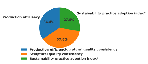 This improvement shows how important it is for DTs to keep things precise and yet still keep the original art. Also, the sustainability practice usage score went from 50% to 85%, which means that people are doing 35% more environmentally friendly things, like reusing materials, saving energy, and reducing trash. These improvements not only show that Digital Twins improve work and art on the other hand, they also encourage practices that are good for the environment. Adding DT technology to modern sculpture production settings makes them better all around by bringing together speed and artistic quality with sustainability.