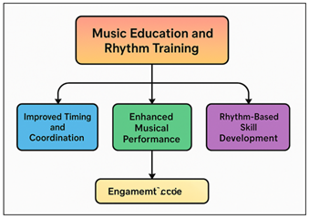 Figure 2 Flow of Music Education and Rhythm Training Process Neural beat trackers and tempo analysers are used to visualize rhythmic patterns in wave or digital beat grids allowing students to improve their ability to keep time. Stepwise rhythm learning along with AI feedback is demonstrated in Figure 2 Also, the difficulty of beat tasks can be changed by AI systems based on how well a learner is doing. This customisation helps in people to make steady progress while keeping the people interested and motivated. AI-powered rhythm tools are also self-paced learning resources, so students need not be watched by a teacher all the time. They also enhance band training by putting multiple performers in sync with each other by using shared beat mapping, as it makes group performances more cohesive. Using AI analytics, teachers can look at their student's regular growth numerically and see patterns of change or mistakes which keep happening. 4.2. Interactive Learning Tools and Applications A growing community of dynamic learning tools and apps that make rhythm education more fun, approachable and immersive are based upon AI-powered beat recognition. These tools rely on machine learning techniques and have game-like interfaces to get trainees to actively get involved and maintain motivation. Rhythm based mobile apps, virtual drums models, AI-assistance software to create music are all examples of things changing based on the accuracy of the given time and the progress of the performance. In these kinds of systems, the AI is always listening to the music to find beats, sync up the playback and provide real-time feedback. Rhythm can be demonstrated visually to students with simple to understand graphics such as moving bars or coloured pulses that change colour with every beat. By linking hearing with seeing and touching these visualisations enhance the harmony between the two. AI tools employ game-like features such as scores, badges, levels and tasks to make learning rhythm fun and competitive, to keep people engaged in a long-term way. Adding AI also makes flexible learning possible, in which the software changes the speed, difficulty or musical patterns based on how well the learner has done in the past. This constant feedback process ensures that the success of each individual is individualised and that newbies do not get frustrated. These tools can also connect to cloud-based platforms, which allow teachers to check up on students progress from far away from them and make lesson plans based on data. 4.3. Integration into Online and Classroom Settings Using beat recognition in the classroom and online with AI technology has shifted the way rhythm education is taught to students and is more open, data-driven, and engaging to everyone. Teachers in regular classes can use AI-based software to check the progress of students managing time during practice sessions or live shows. Real-time beat tracking allows teachers to see how well a group is synchronised with one another, find problems with the speed and give quick advice on how to fix them. This makes group music lessons, practice and rhythm work more effective. AI tools are very important for online learning as they help students as well as teachers who are far away to communicate. Platforms that are able to find beats permit virtual rhythm tests in which students can post audio files to be automatically graded. The method provides input about the accuracy of the beats, regularity of the pace, and feeling of the emotions, which assists the player in improving himself or herself. Also, AI models can respond to various internet conditions, which ensures that live virtual lessons keep in sync. 5. Case Studies and Implementations 5.1. Examples of Educational Platforms Using AI Beat Detection A number of current teaching sites have managed to incorporate AI-powered beat recognition for making learning rhythm and music more fun. Machine learning techniques are used by apps like Yousician, SmartMusic, and Melodics by analyzing user real-time playing abilities and finding beats, pacing, and rhythmic accuracy. These platforms provide the learner with immediate audio and visible feedback, which aids in correcting their time and improving their coordination in movements. For instance, Yousician also utilizes AI to determine users' abilities to match their rhythms to backing tracks. Its beat-tracking tool indicates where the goal pace is not being met and provides specific comments to assist with the regularity. In addition, SmartMusic, the mostly used software in schools, uses intelligent beat recognition to grade group performances and individual practice sessions. Teachers use performance screens to keep an eye on progress of students and find common mistakes while students get thorough rhythmic breakdowns. Melodics is onboarded to drill the drums and electronic instruments. It uses AI beat recognition to make complicated rhythm exercises fun and change-based upon the skill level of the student. Apart from the business software, there are research projects such as Google's Magenta Studio that explores the chance of AI rhythm generation and live beat alignment. These projects relate the study of learning music to the freedom of experimenting creatively. The case studies demonstrate that AI beat recognition increases student interest and increases the accuracy of teaching. With its real-time analysis, personalised feedback, and flexible learning pathways these tools transform the way music is taught and encourage students to practice by themselves and advance their skills in a variety of learning settings. 5.2. Analysis of Learning Outcomes and Student Engagement Adding AI-powered beat recognition to school systems has made a big difference to the way the students learn and how engaged they are in their work. Studies and real life applications in the classroom demonstrate that students who use AI powered rhythm tools are more motivated, have more time and 