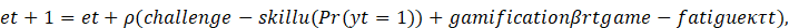 where σ(z)=1/(1+e−z), aik≥0 (concept discrimination), bi (item base difficulty), and λ>0 scales action difficulty dt. Phase -4] Knowledge Tracing (Bayesian / Logistic) Mastery evolves with practice and feedback: