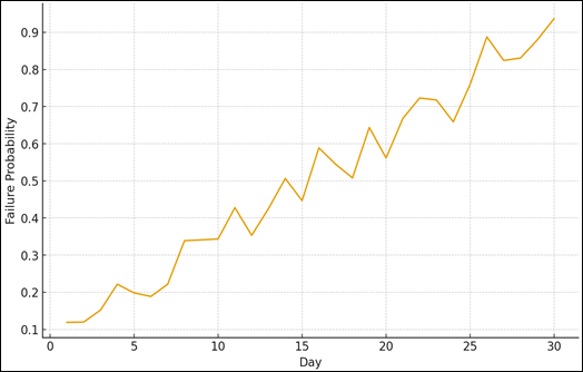 Figure 5 indicates the estimated probability of failure of a device within the same period of 30 days. The rising curve represents a slow drop in the health condition of the device, and it correlates with the wear-and-tear patterns of the enterprise printers being used constantly. Spike variation in probability of risk is an indication of the times when the maintenance classifier was able to detect abnormal temperature fluctuation, frequency of jam, and usage stress. The system detects the fact that preventive maintenance needs to be done at scheduled intervals as the probability attains greater heights towards the end of the period, before a real failure occurs. Based on this, predictive modeling is powerful in terms of pinpointing warning signs in time, lessening downtime, and followed by timely and cost-effective maintenance actions grounded in data-driven information. A combined study of all three predictive models demand forecasting, maintenance prediction and anomaly identification the way the system works as a unified smart print environment. The models do not operate as a set of modules operating independently, but instead they affect the flow of decisions and share with each other. An example of this is that forecasted heavy loads may cause early toner replenishment and an anomaly alarm may cause temporary job rerouting around a suspicious device. The interdependency is the result of a bigger theme of the holistic orchestration where predictive insights are all used to direct automated policy enforcement and optimization of infrastructure. Figure 6
