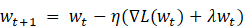 stochastic gradient descent (SGD) with learning rate e and regularization term