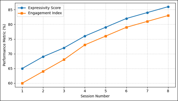 the steady increase in the Engagement Index (EI) and Expressivity Score (ES).