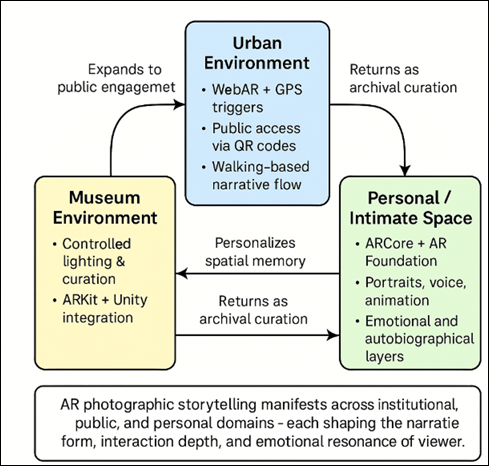 semiotics, spatial computing, and interactive narrative design. In contrast to