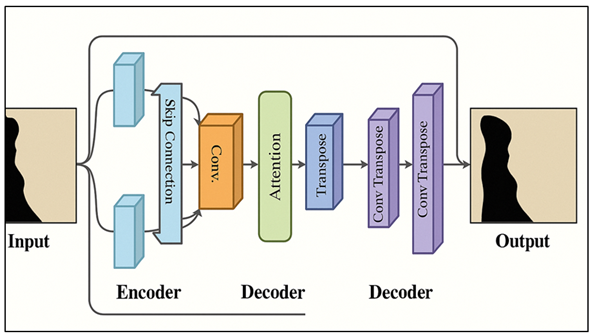 This has the advantage of gradient flow and reconstruction fidelity. To ensure that reconstructed patterns are mathematically accurate as well as perceptually plausible, adversarial training is used to facilitate the recovery of texture, geometry and stylistic details in a refined manner. 3.2. Generator–discriminator interaction The operation of GANs is based on the interaction of the generator and the discriminator, which are central to the mechanisms of GANs learning to recreate the realistic patterns. The work of the generator is to project the incomplete or noisy pattern inputs to the form of a reconstruction that must be approximated of the underlying motif. These reconstructions are compared to real samples by the discriminator to impose on them high-level perceptual and structural consistency Zhang et al. (2021). Such an adversarial process is directed by joint gradient procedures: the discriminator is trained to estimate differences and the generator to get rid of them. The feedback given by the discriminator in training is at the level of features by detecting the minor variations in geometry, texture continuity, boundary alignment, and motif symmetry. This feedback acts as an implicit supervisory feedback which is much stronger than the traditional pixel based losses. Using iterative optimization, the generator starts to internalize the discriminator learned distribution and start synthesizing outputs which are on the manifold of real patterns. In tasks of pattern reconstruction, the generator of the network is normally encoder-decoder, attention module, or multi-scale networks to extract contextual information. The discriminator can be patch based (Patch GAN), be multi-scale, or feature matching based to assess local and global consistency. Such a tiered feedback is necessary so as to guarantee that the generator is at work not just filling the holes, but also recreating them in a stylistically correct fashion and contextual relevance. 4. Proposed GAN-Based Pattern Reconstruction Framework 4.1. System architecture overview The suggested GAN-based pattern reconstruction system is an end-to-end generative system that has the capability of recovering missing, occluded or distorted visual motifs with high-fidelity reconstruction. It combines three key components, namely, a feature encoder, a generator-Discriminator pair, and a loss fusion mechanism. The encoder is the first step in the workflow that involves climbing the low- and high-level features of the incomplete input pattern. Such features are then passed on to the generator that recreates the reconstructed output according to the contextual features and latent texture representations. The discriminator is a parallel actor that determines the genuineness of generated results, the results should conform to the statistical characteristics of authentic pattern information. The architecture has taken the form of a conditional GAN (cGAN) where the generator takes the corrupted pattern and a condition mask that shows missing regions. This conditioning guarantees orderliness between the input and output fields structure. The model is used in order to improve the quality of reconstruction using multi-scale convolutional layers, skip connections, and attention blocks which capture long-range dependencies and local symmetries. Also, multi-loss optimization, which is a mixture of reconstruction, perceptual, and adversarial losses, favors local texture reconstruction and global pattern coherence. The feedback of the discriminator is refined back and forth to direct the generator to produce realistic results. This structure can be expanded into various realms of patterns, such as cultural motives, textile patterns, mosaic patterns and digital art patterns. It is a versatile architecture because its modularity enables straightforward functionality growth through the addition of more powerful techniques like transformer attention or diffusion priors to it. 4.2. Generator Design for Structural and Textural Recovery The generator is at the heart of the reconstruction process, and it is the task to create visually convincing and structurally consistent outputs that have been produced on the inputs of partial or noise patterns. It was designed using an encoder-decoder structure in the form of U-Net structure to maintain the spatial coherence whilst restoring the fine-grain textural features. The encoder works out hierarchical feature map in successive convolutional layers, which encodes edges, contours and contextual dependencies of the input. Figure 2