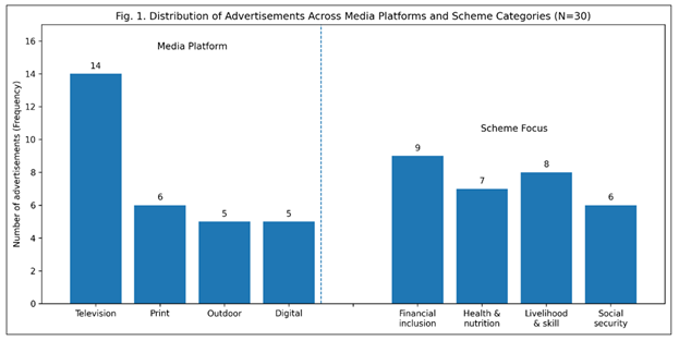 The analytical methods in the study are summarized in Table 8, where each of the research objectives is correlated with the type of data and method of data analysis. It underscores the use of content and thematic analysis of the visual narratives, descriptive and inferential statistics to measure awareness, perception, and impact in the rural women. 4. Analysis of Visual Narratives in Government Advertisements 4.1. Advertisement Sample Characteristics The N= 30 government advertisements concerning women-based government schemes were chosen to be analyzed systematically through visual narrative as indicated in Figure 1. These adverts were obtained through TV, print, outdoor advertisement boards and official online. Coding Each ad was coded with the use of structured content analysis protocol based on narrative structure, representation, symbolism, and emotional appeal. Figure 1