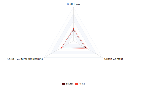 do the cities of Rome and Bhutan compare in terms of Built Form, Urban Context,