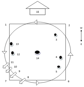 – yiyo. Beginning the song thus Like all the gods who assembled And began the tilling of the field We, those who populate this big village We, the shamans of this realm Rubbing shoulders with the rhapsodists In hordes of groups and subgroups Singing the loutarol song sung by the gods We present to you this song again Forgive us our mistakes, forgive our iniquities For you are magnanimous, for you are benevolent We seek permission from you two To till the land For the big village under your Lordship For big and high-yielding paddy stems and grains Grant us a bountiful and pest-free harvest We pray to you Lord of the Lords We pray to you Consort of the Consorts. The exposition part of the performance begins after the invocative songs. Here, Nurabi and her fellow workers sing a song together. They act as if they were digging the earth for sowing paddy. This song is called louyan eshei, or tilling/digging song while taking a round of the laipung anti-clockwise. My father’s field it is Hey yanse [Let’s till/dig]. My forefathers’ field it is Hey yanse Till the field for a peaceful kingdom Hey yanse Till the field for the king’s long life Hey yanse Till the field for a prosperous kingdom Hey yanse Till the field for bountiful crops Hey yanse Till the field for long lives Hey yanse Till it for it is the field for sougri and mayangba Hey yanse Till it for it is the field for lomba and fadigom Hey yanse Till it for it is the field for fourel and foujao Hey yanse Till it for it is the field for singkha and singthum Hey yanse Words in italics are names of Manipuri herbs, vegetables, rice, and eatable roots. Here the workers are talking about farming the land apart from cultivating rice, which is the staple for Manipuris. Towards the end of this song, the actor who acts as Haoba enters the performance space from the Northwest side of the sacred space. It is the ‘rising action’ in the performance. Haoba’s costume is elaborately explained in Panthoipi Khongkul (2012), transliterated by Moirangthem Chandra Singh: Masampi langmai ningtou yoyrenpati Tangkhul huitek pakhangpapu sana chayrei, yungchingna nanlao shengkmana sharing-feithekna chumpul lallei themhuyroi chumphalchil lolei kokhupna kurao falang thang yairi khongthomna Tangkhul toro leikham thang, thanglen chachingninglongpapu naktayepna tentong namta hul lirung shapainana Tangkhul yayrong namipa phipu chayrei khaonnana khuthang mitamshingna hempa khullanpapu shana laklakye. (p. 117) His Lordship Nongpok Ningthou Yoirenba Huitok [Haoba] appears as a Tangkhul youth wearing the Tangkhul dress, wrap-around above the knee and the upper garment tightened diagonally over the chest. His head is adorned with headgear with animal horns and flowers. He wears a sheath at his waist made from kurao [a tree] with strings made from vines and carries in it the Tangkhul dao called torthang. On his back, he holds a quiver filled with arrows and a bow in his hand. He also wears a long Tangkhul cloth as a carry bag across his shoulder and walks as someone who is crossing a village towards a destination. [author’s prosaic translation] Haoba is played by someone who can sing, dance, do mimicry, and be good with retorts and improvisation. The entire performance rests on his antics while the other characters fulfil the ritualistic needs. He comes towards the South-West and gestures, shooting an arrow. From there, he goes towards the North-East, then to the South-East, repeating the same motion of shooting an arrow. Finally, he comes towards the centre of the sacred space and pretends to shoot an arrow towards the sky and then to earth while facing the presiding deities. This space is known as laiboula thapham or the space where the offerings are made on a banana leaf for the start of the daily ceremony. After this, Haoba disrupts Nurabi and her co-workers and argues that it is his land, not hers. A verbal fight ensues, and this fight is expressed in the form of khutlang eshei awai akhum or the workplace duet. The khutlang eshei, sung by both Haoba and Nurabi, exhibits variations from one locale to another, owing to the inherent space for improvisation. Nevertheless, numerous individuals have standardised these songs over the years, resulting in an established format. The core theme of their performance centres around self-identity, as they remain unaware of each other's true selves. This duet showcases their cleverness, laced with the subtle emotions of the heart and the fervent desires of youth. Eventually, the duet reaches its conclusion when Haoba affectionately addresses Nurabi as "O! Nongmai Nurabi" three times. Meitei Lambu disrupts the fight over the tilling rights of the land, which the spectators know as a hillock in the Saramching (a hill range) even though the performance is happening at the sacred ground. He is successful in bringing reconciliation between Haoba and Nurabi. The conflict is resolved, and the ‘falling action’ begins. After the reconciliation, Haoba and Meitei Lambu sing a khutlang eshei awai akhum. The 'denouement' commences as Haoba joins Nurabi and her seven colleagues in cultivating the pam (jhum). While they diligently work the soil, Haoba experiences an unexpected bee sting. Together, they track down the bee's origin and uncover a beehive. Together, they harvest the beehive and relish it. Following this brief diversion, they return to their task of tilling the jhum. When Haoba gets stung by the bees, Nurabi playfully remarks, "Let your pain subside, but the bulge should remain," thereby maintaining the central theme of their performance. While tilling the pam, the workers will heave Ho yanse! He yallu (let us dig) and act as digging the soil. The performers make a complete round digging the field, and the performance comes to an end after the louka eshei (end of work song) is sung by the maibi. Figure 4