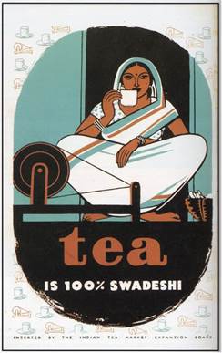 advertisements promoted the indigeneity of tea with the tagline “100% Swadeshi” and endorsed it as