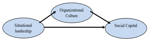 The study found that the lower boundary was 0.391 and the higher boundary was 0.475, both falling inside the positive range, as shown in Table 13. Organizational culture has a mediating function in the relationship between situational leadership and social capital in the Iraqi service sector. 4. CONCLUSIONS and RECOMMENDATIONS This research aimed to examine how organizational culture influences the relationship between leadership and social capital. The results of the structural equation model analysis indicate that organizational culture acts as a mediator in the relationship between leadership and social capital. Leadership can anticipate social capital processes and understand the perspectives of the leader and other staff. Leadership is the primary factor in constructing social capital and is seen as the most crucial element of human resources. Leadership is the most essential instrument for guiding and optimizing organizations. Individuals in organizations with strong social capital and shared identity engage in reciprocal learning and teaching via their educational networks and communication channels, resulting in a high-level organizational culture. For enterprises to thrive and progress, they need to enhance their environmental ethos and implement significant organizational transformations. Leaders have a crucial role in directing organizations, detecting environmental needs, and supporting appropriate progress, which is increasingly significant. Organizations are established to achieve certain goals. Organizational efficiency is crucial and depends on goal attainment. The results of a well-organized entity's efforts meet or exceed the organization's objectives Miskel & Hoy (2012). In his research, Lussier (2006) contends that leadership style comprises a set of traits, talents, and behaviors that managers use to interact with their employees. Leaders that foster innovation via introducing fresh perspectives, generating insights, inspiring, and motivating their followers, and entrusting them with responsibility and dedication will guarantee the organization's sustainability and expansion. These leaders possess the ability to handle risky situations, address challenges and opportunities, motivate their team members to dedicate themselves, cooperate voluntarily, and put in significant effort by being accountable and imaginative. Ultimately, they can turn organizations into knowledgeable entities Mortazavi et al. (2005). Leadership may enhance social capital and facilitate the achievement of an organization's objectives. A leader may enhance an organization's culture and social capital by using various leadership styles and promoting self-confidence, creativity, and intellectual stimulation within the team. The research suggested focusing on the quality of leaders hired in service organizations in Iraq because of the significant influence of leadership quality on the social capital practices of companies. Future research should examine many aspects of organizational culture under diverse organizational frameworks and contexts.
