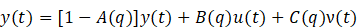 \ref{fig.1}. We define A(q), B(q) and C(q) as polynomials of known orders follows: In a generic way, it is presumed that y(t) = 0, u(t) = 0