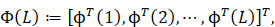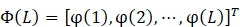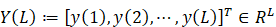 the vector of stacked output Y(L) regarding equation (6) and the matrix of