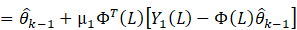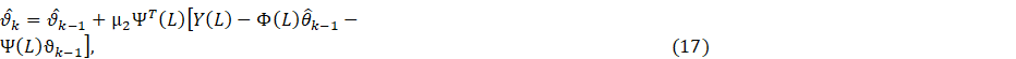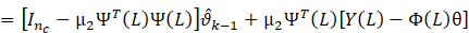 = Here, As to eschew calculating the intricate eigenvalues of a matrix which is square and to decrease evaluation expense, the trace of matrix is taken advantage of and capitalized on a different manner for picking up the convergence rate: Now it is possible to attain the gradient based iterative method for CARMA system presented in equation (1) with the following set of equations: