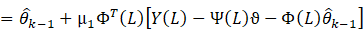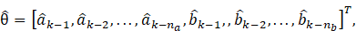 stacked information 5) Upgrade the parameter estimation vector $\hat{\Theta}{k}$ by equation (\ref{eq.4}). 6) Contrast
