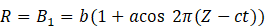 1. INTRODUCTION Peristaltic transport is the movement of fluid achieved by alternating compression and relaxation along a distensible tube, which propels the fluid. The principle of peristaltic transport of fluid is extensively utilized in industrial and commercial pumps. Peristaltic pumps use rotating rollers pressed against a distensible tube, creating a pressurized flow. The fluid is moved through the tube with each rotating motion. The major advantage of a peristaltic pump is that the only contact the fluid being pumped has with the peristaltic pump is in interior of the distensible tube. This allows isolation of the fluid from the environment of the pump and is essential in the case of sterilized or hazardous fluid being transported Gupta & Gupta (2007). Peristaltic transport of fluid is common within the human body. Example of this include: urine flow from the kidney to the bladder, swallowing through the esophagus, movement of chyme in the gastro-intestinal tract, intra-uterine fluid motion, flow of spermatozoa in the ductus efferentes of the male reproductive tract, movement of ovum in the female fallopian tube, transport of lymph in the lymphatic vessels and the vasomotion of small blood vessels such as arterioles, venules and capillaries Shit et al. (2010). Earthworms also use peristalsis as a means of locomotion. The current study will focus on peristaltic transport in the human body, in particular transport in the gastro-intestinal tract and capillaries. Epithelial cells line major cavities and organs of the body. These include the stomach and small intestine, kidney, pancreas, and esophagus. Epithelial cells also form the structure of the lung. The epithelial cells that line capillaries are referred to as endothelial cells. Epithelial cells serve many functions which include transportation and absorption of nutrients. Absorption of nutrients by epithelial cells is accomplished by a process called transcytosis. Transcytosis occurs as membrane-bound carriers selectively transport materials between one part of the cell and another to maintain unique environments on either side of the cell Barnes et al. (2008). The selective absorption of nutrients or materials by epithelial cells facilitates modeling epithelial cells as porous media. This motivates the formulation of the current model. Early studies in peristaltic pumping was carried out by Shapiro et al. (1969). They investigated peristaltic pumping under small Reynolds number and a large tube aspect ratio to allow uniform pressure distribution over the tube cross section. They presented results for varying geometric parameters and introduced, explained, and illustrated reflux flow. They also referred to an experiment that confirmed their findings. They applied their model for peristaltic pumping to the gastro-intestinal system. Barton & Raynor (1968) explored the case where the wall disturbance wavelength is much larger than the average tube radius, and when the disturbance wavelength may be as small as the average radius. They used numerical techniques to determine the relation between average flow rate and pressure differential across a wavelength. Wei et al. (2003) investigated pressure driven flow of a Newtonian fluid in a two dimensional wavy, poro-elastic, cartesian walled channel. Biphasic mixing theory is employed for the poro-elastic layer and the flow is solved by a lubrication approximation using the aspect ratio of the channel. They obtained the velocity fields using a perturbation approach and discussed the fluid flow and geometrical parameters that develop and influence trapping or recirculation eddies within the Newtonian fluid. Mishra & Rao (2008) studied peristaltic transport in an axisymmetric tube, with a Brinkman porous peripheral region and a Newtonian fluid core region, using the lubrication approach. They allowed for deformation of the porous-fluid interface by determining the interface as part of the solution using the conservation of mass in both the porous medium and fluid medium separately. They used a shear stress jump condition at the interface between the peripheral and core regions. Pumping characteristics, trapping, and reflux phenomena are discussed for various parameters governing the flow. In this present study, peristaltic transport of an incompressible Newtonian fluid in an axisymmetric, porous, corrugated, or wavy tube is investigated. The porous layer is modelled as a Darcy region with a transition Brinkman layer. The analysis is performed in a wave frame of reference. Lubrication theory as well as perturbation analysis is used to solve the velocity field and pressure. The boundary conditions used at the Brinkman-fluid interface include jump in tangential stress, continuity or normal stresses and continuity of radial and axial velocities. The boundary conditions at the Brinkman-Darcy interface include the Beavers and Joseph boundary condition and continuity of normal stresses. The phenomena of reflux or recirculation is observed and its dependency on the fluid flow parameters of hydraulic resistivity, tangential stress jump and the Darcy slip parameter is studied from streamline and velocity field plots. 2. MODEL FORMULATION Peristaltic pumping is modeled as the motion of an infinite wave train along an axis symmetric porous cylindrical tube. The tube core is filled, and the porous layer saturated with the same incompressible viscous Newtonian fluid. The equation of the infinite wave train at the outer walls of the porous media, in cylindrical polar coordinates is given by: where The equation representing the Core - Brinkman interface is: The equation representing the Brinkman - Darcy interface is: Figure 1