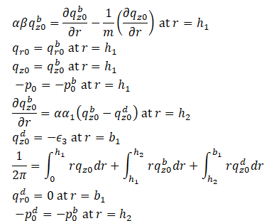 Conditions: 2.1.8. Solution to the leading order system Core region Brinkman region Darcy region where the terms: 2.1.9. Obtaining the Constants The boundary conditions are now applied and expressions