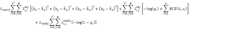 YOLO v3 version was proposed in 2018, this version is also the last one proposed by the original author Joseph Redmon and others, v3 was changed from the Darknet-19 architecture of v2 to the Darknet-53 architecture, starting with a 32-filter convolutional kernel, followed by five sets of repeated residual units (resblock_body), each consisting of a single convolutional layer and a repeated convolutional layer, with the repeated convolutional layers for a total of 52 layers, and the last fully concatenated layer is changed to a 1x1 convolutional layer for a total of 53 layers. Compared with Darknet-19, Darknet-53 adds more layers, so the speed is much slower, but it can still process 78 images per second [3]. YOLO v3 maintains a higher performance compared with other ResNet of the same precision. During deep learning training, an equation is needed to evaluate the various losses in detection, such as the center marker, the width and height of the prediction boundary, the category, and the confidence index [9]. The first row represents the offset prediction of the model Bbox (bounding box), where S is the number of grids, B is the box, 1_(i,j)^obj means if there is a target in the box, its value is 1, and vice versa is 0, b_* represents prediction true, b ̂_* represents ground true, the second and third rows are the confidence score prediction and class prediction of the model. The category prediction is changed to a binary cross entropy (BCE) loss function, where 1_(i,j)^noobj means that if there is no target in the box, its value is 1, and vice versa is 0. The loss function can be expressed as follows. loss= The performance of the model after YOLO training is mainly