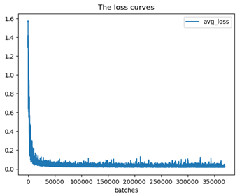 The deep learning model was set to train 400000 times. After the training, the Loss and IoU would be output in graphical way. The Loss value is the loss function of the model, and the smaller value means the less loss as shown in Figure 5. The Loss value is very large at the beginning of the training, but it starts to decrease obviously after 10,000 times, and finally it is close to 0. Figure 5