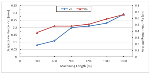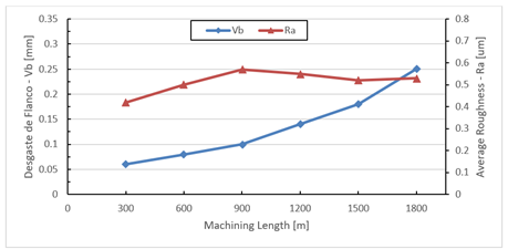 speed. In Figure 5 it is shown the behavior of the flank wear and average roughness to