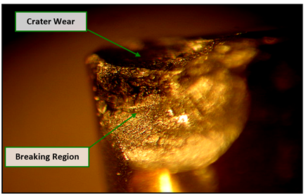 example of tool breaking is in Figure 8. This breaking occurred for Vc=200 m/min; f=0,10 mm/v; ap=0,15 mm, where is visible the