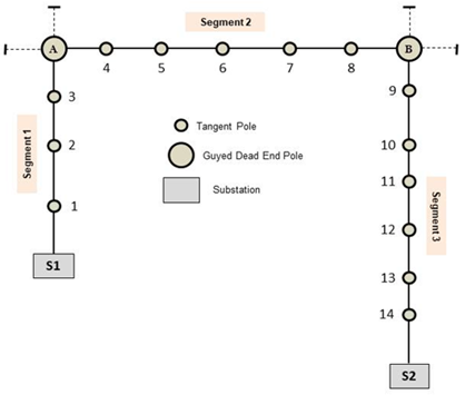 the concepts is illustrated with a 3-span, 2-pole segment containing wood and