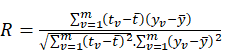 tv is the actual value, yv is the predicted value produced by the model, and m is the total number of observations. The correlation coefficient (R): This criterion reveals that the strength of associations between actual-values and predicted-values. The correlation coefficient has a range from 0 to 1, and a model with a higher R means it has better performance.