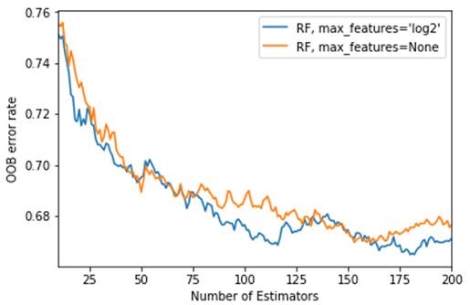 4.4. MODEL TRAINING AND TESTING Figure 3 shows the Out-of-bag error rate of the proposed random forest regressor. The aim here was to obtain the right number of estimators that will offer fewer errors. The minimum number of estimators was set to fifteen (15) and the maximum to two hundred (200). The result shows that as the estimators increase in number, the error margin reduces. However, the error increased when the number of estimators increased above one hundred and seventy-five (175). Hence, for this study, the number of estimators was set to one hundred and sixty (160).