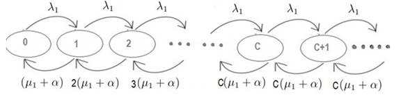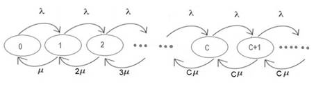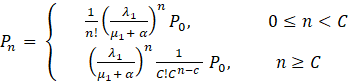 Here So, the steady state probabilities are: We know, Sum of all probabilities =1, Which gives Now the expected number of customers in the queue and system is: Employ Little’s Law L=λW. Thus, expected waiting time in the queue and system is: 2.4. M|M|C MODEL WITH BREAKDOWN