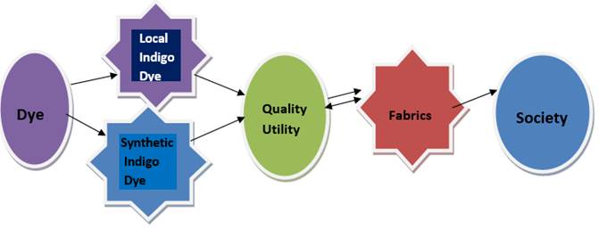 indigo dye (SID and quality utility (QU) (Authors, 2020). The above model indicates that both the local indigo and synthetic indigo dyes (aró ìbílẹ̀ àti ti òyìnbó ) have quality utilities on the fabrics in our society irrespective of the texture of the indigo. The quality utility of any indigo dye depends on the choice and taste of the individual who desire to have the fabric. In this regard, indigo dyes (local and synthetic) cannot be abandoned or swept under carpet in Nigeria, and Africa at large.
