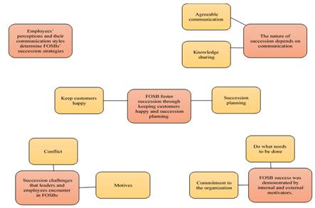 4) Behavioural intention: The motivational factors that influence a given behaviour, in that the stronger the intention to perform a behaviour, the more likely the behaviour will be performed. Behavioural intentions to achieve successful succession was strong, as there was a significant collective motivation for the businesses to succeed after succession. Participants demonstrated a sense of duty toward the businesses and their legacies, and they also acknowledged the businesses were an important part of their livelihoods. These factors increased intentions to behave in ways that would foster succession success. Behavioural intentions construct was reflected in the theme, Employees’ perceptions and their communication styles determine FOSBs’ succession strategies. The perception of the importance of communication for fostering success within the FOSB resulted in behavioural intentions related to communication. Participants understood the ways they communicated with family members had the potential to either create or thwart conflict. As such, it became a behavioural intention to engage in helpful, clear communication.