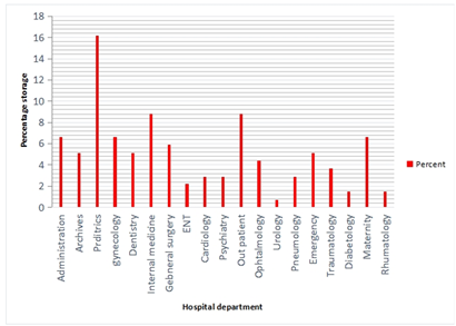 More than half (59.6) of the participants were female. This result is similar to that of Kouotou et al. in 2017 Petersen (2023) which had also found a female predominance (62%) in the city of Yaoundé. This could be explained by the high proportion of women in the results of the various competitive entrance examinations for medical training schools and direct recruitment in the country's health facilities. Our study population was mainly represented by nurses that is 53.7%, and archivists 5.1%. The latter were only present in two hospital formations. This could explain why the archives were mainly found in the departments.
