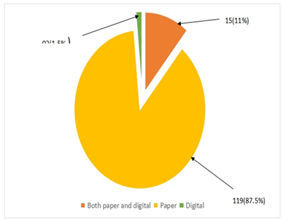 Medical records (MR) are the document that explains all detail about the patient’s history, clinical findings, diagnostic test results, pre and postoperative care, patient’s progress and medication Al Otaybi et al. Medical records keeping is an inevitable part of health care delivery as it serve a means of storage sharing, and maintaining patients’ medical records of vital information on the patient past ailments and its management, the current treatment and possibly a treatment plan or protocol that has to be followed in future Awokola et al. (2012) Medical professionals have obligations to keep these records in a confidential manner. Additionally, they are also obliged to ensure that records are legible, accurate, and that the documentation is presented in an orderly fashion essential to the decision-making by these participants and providers who may not know the patient or actually even see the patient Bali et al. (2011),Dujat et al. (1995). Medical recording and archiving became significant in a hospital environment in the 1970s and has adapted to meet the requirements of medicine in terms of quality, safety, continuity of care, but also for research, teaching and public health Bali et al. (2011). The medical record represents for this purpose the memory of the doctor and the memory of the contemporary health system Bali et al. (2011). It is on the strength of this observation that in 1980 the World Health Organization (WHO) drafted directives on the practice of medical records (from their creation to their archiving through their confidentiality) to be applied according to the laws of the countries members in order to preserve the integrity of medical data Isaac (2020) Historically medical records were only kept in paper form but increasingly they are now being maintained in an electronic form or a combination of paper and electronic form Jeong et al. (2022)It is kept under conditions allowing its accessibility, its integrity and the preservation of the confidentiality of the information it contains. The file and its archiving are inseparable, the quality of one resounding on the quality of the other Kanchan (2016)Recent studies reveal that 78% of American doctors have recourse to the exclusive use of the electronic medical record (renewable energy) against 66% for the member countries of the European Union. In developing countries, the medical data recording system is still largely paper-based Kouotou (2017)