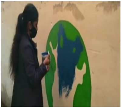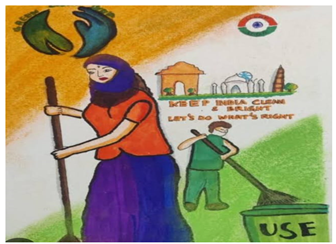English: Civilization symbolizes the civility of any society, while art is an expression of human emotions. When a social message is presented artistically, it leaves a deep impression on the public. Under the Government of India's "Clean India Campaign," efforts are being made to promote cleanliness across the country. A message of cleanliness delivered only in the form of a speech or order has limited impact. However, when the same message is conveyed to the public through paintings, music, drama, wall paintings, sculpture, dance, or song, it resonates deeply with the public. Hindi: सभ्यता