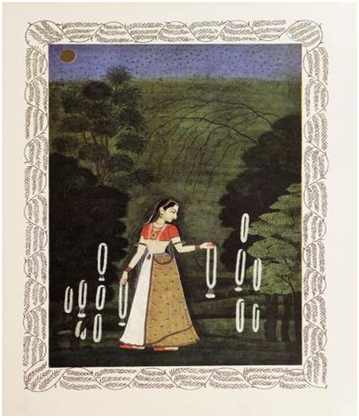 English: Among the various styles of indian miniature painting, the Kangra style holds a significant place. The Kangra style is considered to be the most sensitive and aesthectic style in indian miniature painting. This style exhibits a synthesis of nature, human emotion, and devotion that makes it distinct from other styles. Especially in depicting moonlit night, Kangra artists have demonstrated their imagination and emotional depth to the extreme. The artists have not merely depicted the moonlit night as a natural background element, but have depicted it as a key component influencing the emotional atmosphere of the paintings. The Kangra School artists have imbued Radha Krishna’s love life, flute playing, and other romantic scenes against the backdrop of a moonlit night, giving them a transcendental beauty. The combination of white and blue colors in these paintings, along with the shadows of trees, the waves of the Yamuna River, and the moonlight spread across the sky, creates an atmosphere in which various emotions such as love, separation, and devotion emerge effortlessly, and the mere sight or experience of them evokes a sense of supreme beauty .The purpose of this research is to analyse the artistic, emotional, and symbolic meanings of the Kangra style depicton of moonlit nights. The primary objective of this research is to explain how Kangra artists have transformed the moonlit night from a mere symbolic of natural beauty to a vehicle of emotions and spiritual experience. This research will thus seek to deeply understand the emotional sensitivity and spiritual aesthectic perspective of indian painting. Hindi: भारतीय