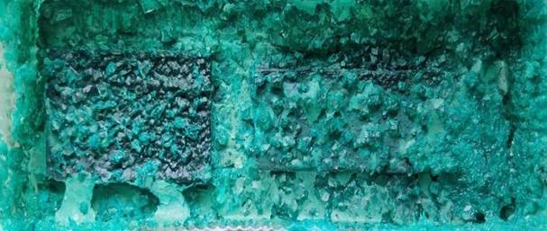 acid produced blue-green patinas is known as verdigris – Vert de Grece roughly translated to Green of Greece, or the French