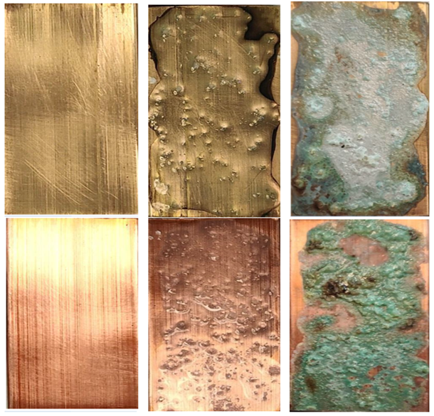 Copper and its alloys, if not protected, rust under environmental conditions.