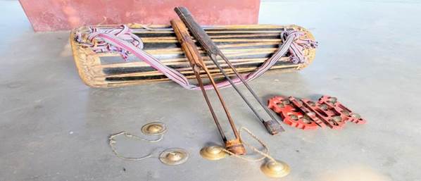 Bwisagu (Mansini Bwisagu) During the week-long celebration of Bwisagu each and every member of the community shared their joy, and the festivities follow a structured sequence. The initial day honors the cattle in a festivity called music, while the subsequent day, known as mansi, focuses on humanity but commences with the worship of deities. Following that, the third day is dedicated to Swima, celebrating the significance of dogs. First four initial days are dedicated to pigs, followed by the fifth day where, pigs, and birds are included. Moving on to the sixth day, it is specifically for ducks and other avian species. Finally, the seventh day is reserved for welcoming family and friends and planting rice. In the Bwisagu festival, there is a belief among some Hindu scholars that the tradition of cow veneration was influenced by Hindus. However, certain Bodo intellectuals disagree with this notion. Throughout history, the Bodo people have relied on cows for cultivating paddy fields, harvesting food, and cultivating various vegetables. Even today, they maintain a deep dependency on cows within their agricultural society. As a result, cows hold a sacred status and are regarded with higher esteem than any other domesticated animal in their cultural framework. 3.2. Music and Dance during Bwisagu Festival The Bodos commence the Bwisagu celebration by playing drums or flutes as part of their tradition. On the first day of Bwisagu, in the early morning, a drummer or flautist delivers a Bwisagu message by playing these instruments for all the villagers. Upon hearing this message, the villagers gather at the village headman's house or a public area along with their musical instruments. They place all the instruments in front of the Bathou (God) and offer prayers for well-being. There is a belief that by praying to God, the instruments will function smoothly during the Bwisagu celebration. Subsequently, the celebration begins at the village headman's house or the public space with dancing, singing, and playing traditional instruments. The villagers gather in different groups based on age the elderly, youth, and children to participate in traditional dancing. Right from the start, they commence their singing and dancing routine, going from house to house, where the residents offer those drinks, meat, and various edibles. Alongside these offerings, valuable items like rice and cash a real so presented to the dancers. In their customs, the Bodos practice a Bwisagu dance known as ‘Mainao Sokhnonai (means begging the wealth) which translates to seeking prosperity through dance Nazaree (2019) The children, young girls, boys, elders, and women joyfully participate in singing the beautiful Bwisagu songs and dancing to the rhythms of musical instruments played by men, including the Kham (a kind of drum made of 3.4 feet wood and animal skin), Siphung (bamboo flute), Jabkhring (metallic tambourine), Jotha (cymbals), Serja (a traditional Bodo musical instrument similar to a modern violin), and Gongona (harp made of bamboo splits) Swargiary (2022). Through the expressive Bwisagu songs, young boys and girls convey feelings of pure joy and happiness. These songs reflect the significance of women, as well as aspects of nature, labor, affection, weaving, remorse, humor, and more Sen (1999). These songs are incomplete without the presence of women. As they dance and sing, they may request donations of rice, money, eggs, etc., from their families if possible. Currently, the Bwisagu festival, once a seven-day event, has been condensed to one or two days, held in an open field. This festival embodies the love for nature, unity, and harmony among diverse groups of people, carrying on the rich. Figure 1