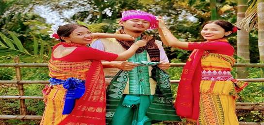 Festival: Changes and Continuity During the field work itwas observed that a small group of Bodo population, particularly those who follow Christianity and different sects of Hinduism, abandoning certain traditions. Kalicharan Mech, a faithful follower of Srimanth Paramhangsa Sibnarayan Swami from Calcutta, initiated the Brahma religious movement among the Bodos in the latter part of the twentieth century. It aimed to introduce the religious principles of Brahmanism to the Non-Hindu Mongoloid Bodo community in Assam by relinquishing their traditional animistic beliefs. They even adopted the surname Brahma instead of Mech. Followers of the Brahma religion also ceased their traditional worship practices and the use of ancestral musical instruments. The ethnic movement initiated by the All Bodo Students Union (ABSU), the Bodo Sahitya Sabha (BSS), and other nationalist groups led to the construction of a Community prayer hall known as a Brahma Mandir, where locals started observing the Bwisagu festival by offerings of fruits and flowers for the well-being of the native people living in the locality. It is worth mentioning that they refrained from using their traditional musical instruments within the mandir, although they have resumed playing them during the Bwisagu song and performances in the community. Due to the impact of cultural change among the various communities of India, transformation in the folk performance arts of the Bodo community have also been taking place nowadays. The songs and dances associated to the Bwisagu festivities have been passed down from one generation to another since long time. Some of the tunes are primarily focused on wishing for a joyful fresh year or illustrating the typical farmer's daily life. Certain tunes are mushy poems to boys that highlight the singer's aspirations and visions. Females and males dances in distinctive but equivalent roles in the Bwisagu dance. Girls usually form neat lines or circles. The Bodo musicians, similar to what they do in the brief competition, are the initial to step into the dance zone, resulting in male and female dancers. The dance is majorly characterized by fixed bodily stances, incorporating particular hand, hip, arm, twirl, squat, and bend motions. There is a shift in the types of food prepared during the Bwisagu festival now a days. They prepare new variety of dishes such as pithas (cakes), narikholni ladu (coconut ball), and sourai ladu (sticky rice ball). Additionally, milk and black tea are now popular beverages served to guests. Interestingly, some individuals have abandoned the tradition of consuming rice beer during the Bwisagu festival and other celebrations, instead, they find joy in singing and dancing together. Bodos uphold a diverse traditional cuisine that reflects their cultural heritage. Despite having a wide variety of traditional dishes, new food varieties are occasionally introduced, possibly due to globalization and the influence of neighboring communities. Over time, some traditional items are disappearing, putting the Bodo identity at risk. It is crucial for us to preserve our traditional food practices in our daily lives. Globalization has significantly altered the dietary habits of tribes, leading to a shift from tradition to modernity in fused with different elements. The Bodo kitchen now show cases a blend of traditional dishes are alongside modern options like McDonald's and KFC, highlighting the impact of culinary globalization. Similarly, performers of Bwisagu adheretoa specific sequence when they are on stage. Some individuals however, do not engage with the musical groups rather they remain engage with their own music of their choice. Nonetheless, in informal Bwisagu dance competitions, certain guidelines and regulations regarding the use of traditional elements related to the Bwisagu festival must be followed and preserved. 4.1. Customary believes associated with Bwisagu festivals The Bodos hold customary beliefs and faiths connected to the Bwisagu festival. These beliefs are not considered taboo but instead serve as guiding principles for the uneducated, innocent, economically deprived communities dependent on agriculture. What makes these beliefs remarkable is their customary and traditional nature, contrasting with the modern, science-driven attitudes. Nevertheless, they hold special significance among the Bodo people dating back to ancient times Brahma (2008). Some of the customary believes and faiths are discussed below- 1) The Bodo community refers to the last day of the Assamese month of Chot as Bwisagu, a day dedicated to honoring cattle. On this occasion, the cattle are revered and protected from being struck by sticks. 2) The Bodos have a long-standing belief that during the Bwisagu festival, no arguments should occur. There is a strong belief that individuals who engage in disputes during this period will be reborn as cows or dogs in their next life. As a result, they make a conscious effort to avoid any form of conflict throughout the Bwisagu festival. 3) First day of Bohag month, family members gather to offer prayers to Bathou after completing house cleaning and purification rituals through bathing Basumatary (2016). They seek blessings from the Bwrai Bathou Maharaza (the community god), for abundance and growth in agriculture. Their prayers are focused on well-being in the upcoming New Year as they bid farewell to the old one. 4) During the Bwisagu festival, the Bodos refrain from utilizing the granary. All form soft trade, including the milling of rice, are prohibited throughout Bwisagu festive period. 5) On the first day of the New Year, the Bodo women visit the house of the Oza or the traditional medicine man. During the visit, they carry Zou, a local rice beer, and roosters as offerings. 6) The Bodos have a tradition of consuming ceremonial meals featuring fowl or meats prepared with a bitter harp spice called 'Khungkha'. Instead, they can also have seven other wild v