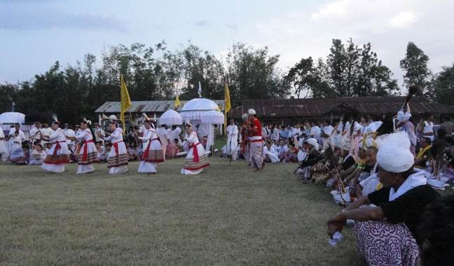 Many books both indigenous and non-indigenous have come about to describe the form of the structure of the Lai - Haraoba. But before the Haraoba assumed this form, shape and size as is seen today, a number of local, sacred writings also indicated certain practices and activities which we may term the pre-Haraoba rituals, which provided interesting insight into the potential future emergence of the Haraoba rites. Dances, plays, spirit mediums, oracles, collective antiphonal, rhythmic exhortative chants, songs and physical activities which emphasized the health of the female population in order to generate birth and biological reproduction. Some of the songs and chants of the past were still incorporated as precious ‘Lairon’ or language of the Gods and are now pieces of sacred wisdom incorporated and preserved into the current corpus of the Lai Haraoba songs. The Leithak Leikharol puya, a sacred book of the 18th century described a series of male female exchanges amongst the deities in the act of the creation of the universe. After laborious narratives of the creation of the universe through the action of the three creator deities and their counterparts in the Meitei pantheon and with the emergence of the female goddesses, there were scenes of collective play, bathing in the ponds and rivers, adornments of the bodies with flowers and change to different attires and then mutual plays of romance, love and sex, at different spaces in the selective glades, as well as certain chosen outhouses or courtyards where the male and female goddesses inter-acted. The act of joyous celebration of the Gods and Goddesses were affected in the collective act of Leitemba, the processing of the finishing touch to the making of the earth, after a long effort in the act of creation. The physical effort of use of limbs, the sweat of muscle, the heat in the bodies, the symbolic imagery of piercing the earth with the plough, serpentine in form and many other such imagic performances were sung and danced out spontaneously. The art of Paosa, exchange of anti-phonal songs in pleasure, and worldly wisdom, the need for preservation of the vital fluid were symbolically implicated in the song and play acts. Here we must be careful to note that there was still not yet, a proper construction of a collective ritual, a secure structure and form as we now see in the still surviving Haraobas. All these descriptions were free flowing and non-sequencing activities between the youth Gods and Goddesses, who sang and chanted rhythmic riddles, danced about, chased each other, laughed in abandon and played. The physical actions included mutual intervention to separate (Khaamnaba), gesture of protection (Ngakpa), running away of the females from the failure of the separating act (Khaamba ngamdaduna chenkhiba), chasing them by the youth gods (Lai pakhang na tannakhiba) and played with fond wrestling acts (Lakna phana sannakhiba) and the space of the game was named Wangol Umang (the Wangolhuman settlement). Hemchandra (2010), P. 77 – 93 Many other places of pleasure were named, the act of bathing, the décor of flowers in the ear, the dressing of new clothes, then the holding of arms and forming of lines and the male gods pleading to the females to their self-preserved homes (eigeekolda, eigeekolda) and the female goddesses consenting and entering, such actions were mentioned with exultance praise and respect by the poet writers. The questions, the answers, the pleasant exchanges, the wisdom riddles with a plethora of collective vows and promises, games of words, mono-syllabic chants (chomo! chomo! Sangtekarenga!). Still undeciphered vocabularies are now ensconced with a veil of secrecy (Atthuppa) in the preciously structured theatrical ritual of the Lai-Haraoba. The Lairon literature as it was termed, if properly translated would provide more authentic information on our ancient society’s religion and culture. In primordial times, probably after the descent from the mountains and settling in the valley amidst banks of rivers and lakes, simultaneously with the formation of a planters economy passing from early vegeculture into agriculture, we possibly remember the words of Wilhem Dupre ‘When we compare the religion of primitive hunters and gatherers with that of primitive planters is generally marked by a sort of increasing complexification’. Dupre (1974). P. 78. As Lokendra Arambam wrote, in his book, ‘With the advent of the planter’s economy and accentuation of shifting agriculture economy (Paamlou), in the late Neolithic of the second half of the second millennium B.C.E. (According to archeologist O. Kumar Singh), the world of the proto-Meiteis were full of developments. Major influences of fertility cults, development of ritual, ancestor gods and goddesses, were to become the feature of the proto-Meitei religion during the next thousand years or so. The universal concept of the mother goddess would be featured, with the prior advent of the belief in the Sky god as father and the Earth as mother. A concept which was shared by the proto-Meitei with the Chakpa-s and many other tribes of South-East Asia. ‘Korounongna eepanee, malemleima na eemanee’ (the Sky is the father and the virgin Earth is the mother) is the general saying. Arambam (1996). P 392 – 393 ‘Vegetation and fertility cults are simply rites concerned with the origin, growth, decay, death and regeneration of created life…. The ceremonies by which hunters secure abundant supply of game being in the realm of religious experience is identical with that of the sowing ceremonies in agriculture, through the totality of religious life, for the fecundity of nature (plants, animals) is but an epiphany of sacred power of life present in everything existing, they constitute a micro cosmic participation in the life of the cosmos, ceaselessly regenerating itself. (Encyclopaedia.com) Again, ‘since religion is intimately connected with the essential situation of