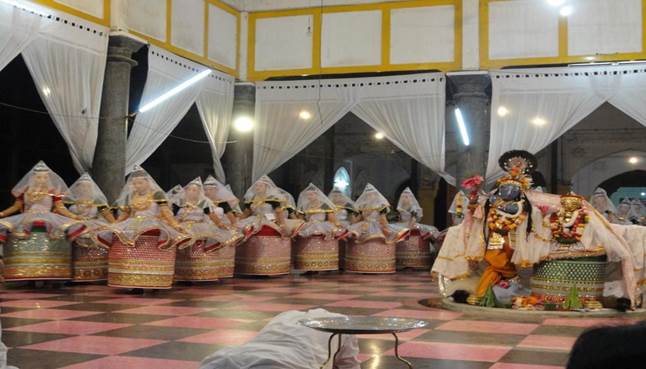 When Chingthankhomba’s grandfather imposed Ramandi (Rama worship) in the early decades of the 18th century, there was strong resistance by the people under the leadership of the wisdom teacher Chingoo KhongnangThaba. The monarch in the urge for personal power and expansion of the nation’s empire he had to undertake violent methods of desecration of traditional temples, destruction or native idols and persecuted the common people. Native literatures were burnt. Fratricidal strife and foreign invasions followed the tumultuous fifty years or so. What the grandson attempted was to effect a compromise between the two religious philosophies, Meitei and Hindu. The Lord Govinda was equated with the ancestor god serpent-dragon god Ibudhou Pakhangba, with his symbol inscribed in the navel of the statue of the Lord Govinda. Traditional customary practices were retained amidst the new imported religious belief. Hindu temples were allowed to be built amidst the clan households with Brahmin families settled amidst the native populations to preside over the new rituals. Traditional Meitei religion and practices were allowed to be retained in the changed social milieu. The indigenous religion by itself was to continue, along with other religions of Islam and tribal religions. Vegetarianism was spread amidst the population which necessitated reforms in the rituals system. Three important indigenous beliefs were incorporated in the construction of the Raas Leela. The basic belief structure of the appeasement of the forces of the female mother earth (Leitai) and of the Father –sky (Nongdai), the principle of the settlement of the gods and goddesses in the native land was assimilated in the consciousness in constructing movements and gestures (Khoiyum Khunthok) and the expressive vocabularies of the gestures were borrowed from the philosophy and language of the Haraoba dances (Haraolon, Khutlon and Shathek – the language of rejoicing the hand gestures and the bodies behavior), were the resources used in the construction of the ritual as well as dances). The script was however the precious Maha Bhagavata Puranas from the 29th to 33rd chapters of the 10th Canto. The songs were in Brajaboli and Sanskrit. The costumes, the imaginary dream vision of the male Lord in his appearance in the monarch’s dream – a style developed in consciousness of the serpent dragon. The ladies costume - of course nature (Radha) in resplendent green and the Gopis in material ghagras to reflect Brindavan ladies of the eons, to prevent any erotic misconceptions. The ladies breasts were covered with white breast-straps (Thabak yet) and the ladies faces were covered with thin veils (Maikhum) along with Koktumbi (conical caps). Theses customaries were to be transformed in the next two centuries as tastes and behaviors changed. The very prototype of the ancient performance continued as pure ritual in the temple of Govindajee, facing a precarious crisis of bio-generational loss of performers, and passing away of the classical generation of the elders, other institutions and teaching institutes are facing certain problems of lack of access to modern disciplines of critical discourses as well as constant focus on the performatives alone. The colonial era of the late 19th and early 20th centuries had also brought in cataclysmic crises in the introduction of the money economy of progressive undermining of patronage, development of competition and strife, as different from the deliberate care and concerns of the ‘Feudal’ monarchs of the past. The nature of patronage has been transformed beyond recognition, families not getting financial support for maintenance properly were forced to use dance too as a profession. Dance that had existed in the ritual environment was gradually taken out of its original spaces in temples, pavilion and processional events and new secular spaces were encountered (not the modern Indian proscenium directly). Deeply religious, orthodox but creative artists went out from their homes and habitat to show dances for a living, but managed to retain the strict principles of their religions art. Others went out to seek secular spaces for entertainment, livelihood and profit. The women, who were still nursed in orthodox religious values, were lured into a new profession, that of the art of exposure of the body in dance in exchange for a living, and recognition, not by a spiritually charged audience, but a secular other human congregation with differing attitudes to the notion of the gaze. The advent of Marbaak Jagoi (the other countries dance) which emerged in the 20’s led to a crisis when the women were ostracized by the educated males of society. They charged the women dancers for using Indian dance forms to titillate the factory workers, thus betraying the dignity of Manipur. They applied to the Manipur Maharajah Churachand Singh (1891 – 1941) to ban the Marbaak jagoi. The Maharajah obliged in 1935. But the women didn’t bother! They entered the proscenium theatre and enriched the Manipur theatre movement. Before, female roles were played by men. Henceforth women entered the proscenium theatre movement. But orthodox Hinduism played a big role to diminish the status of women. In the early 20th century’s women’s education was late in Manipur. Figure 3