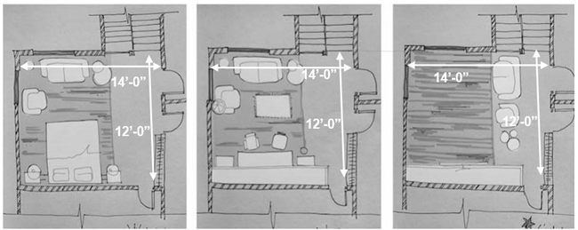 shown below is 14’-0” x 12’-0” which may act as a module for experimentation