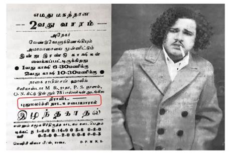 imposed severe crises and looked possibilities to bail out the plays of M.R.Radha in absence of Periyar’s presence in the state. Ramaswamy. (2020) analysis on The Dramatic performances act discloses that, Periyar was on his international political voyage for two months by the time the proceedings of the Dramatic Performances act was turned on. This could probably be the first circumstance faced by the members of the Dravidian movement in absentia of Periyar. The government of Rajagopalachari (hereafter referred as Rajaji) banned Radha’s plays to be enacted, by imposing the Dramatic Performances act of 1876. M.R. Radha officially claimed that the ban imposed on his plays was legally impossible as it was a law proposed by the early British Government to ban the plays of Nationalist Movement. He further stated that this act was invalid as per the Indian constitution as it had no provisions saying the Dramatic Performances act of 1876 continues to stay valid thereafter. At the same time the Article 19 of the Indian constitution provides all provisions for freedom of expression which turned to be a prominent tool to defend for M.R.Radha. This made the Madras Government to recall their Ban on M.R.Radha’s play. Instead, the Rajaji’s Government and then Law Minister C. Subramaniam revised the Dramatic Performances act of 1876 into Madras Dramatic Performances act and implemented it as a state rule to screen the plays. Varied authentic sources including the Madras Legislative Assembly Proceedings on the Madras Dramatic Performances act convey that the proceedings of this act was induced by the revolutionary plays of M.R.Radha, like Thookkumedai (Gallows) , Porvaal (Sword) , Ramayanam, etc. One of the most important characteristics of any group that is developing towards dominance is its struggle to assimilate and to conquer “ideologically” the traditional intellectuals but this assimilation and conquest is made quicker and more efficacious the more the group in question succeeds in simultaneously elaborating its own organic intellectuals. Gramsci (1971). M.R. Radha’s existence in theatre promoting the rational ideologies and political manifestations of the Dravidian Movement through his plays was merely a struggle which ideologically conquered the traditional intellectuals of the Tamil theatre sphere. Beyond that the assimilation was so fast to induce and elaborate the self-respect movement’s own intellectuals to adopt the pattern. M.R.Radha’s intellectuality was so chaotic to the institutional sphere to provoke them in retaliating back. Figure 2